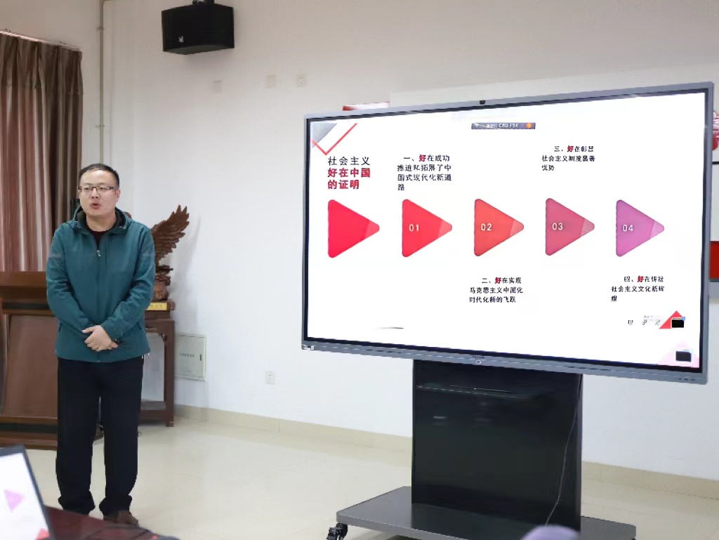 在磨课会上,91重口参赛教师段炼副教授介绍了当前准备情况和比赛进展,并以“社会主义好的中国证明”为主题进行了现场说课。