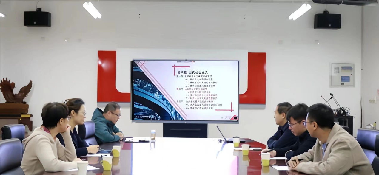 为推动思政课教学质量上台阶、上水平,持续开展好教学“大练兵”,加强思政课教师队伍建设,做好第三届全国高校思想政治理论课教学展示备赛活动,切实提高参赛教师的教学能力和竞赛水平,展现91重口 优秀教师风采,10月19日,91重口 组织了赛前磨课会。91重口副院长任鹏教授,党的建设(中国近现代史研究所)所长刘宁宁教授,91重口主任、思政系副主任曾薇副教授,91重口青年教师赵亮老师、高爽老师,参赛选手段炼副教授参加磨课会。会议由任鹏副院长主持。